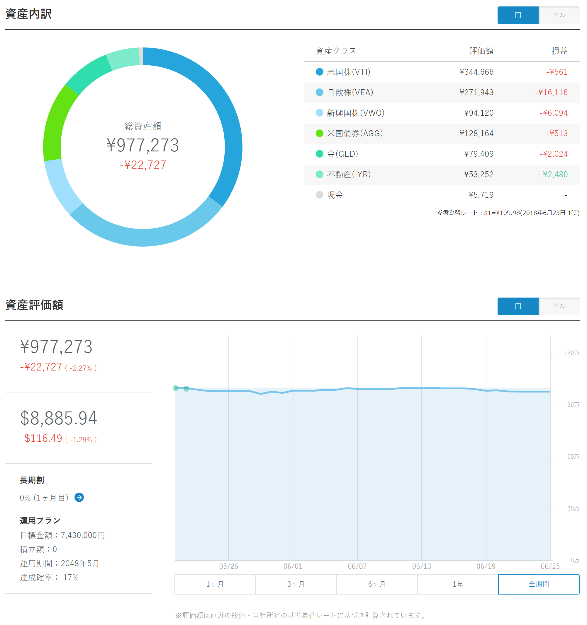 2018年6月24日時点でのウェルスナビ経過報告です。