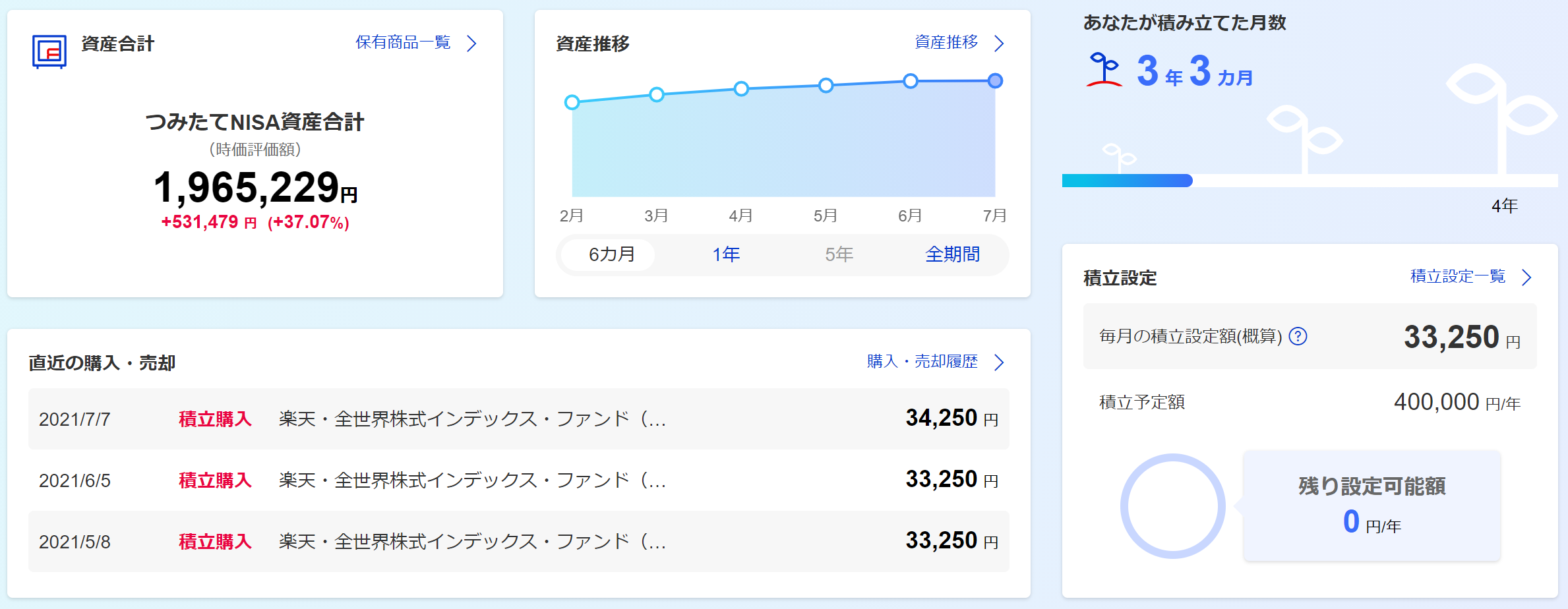 つみたてNISA経過まとめ(2021年)